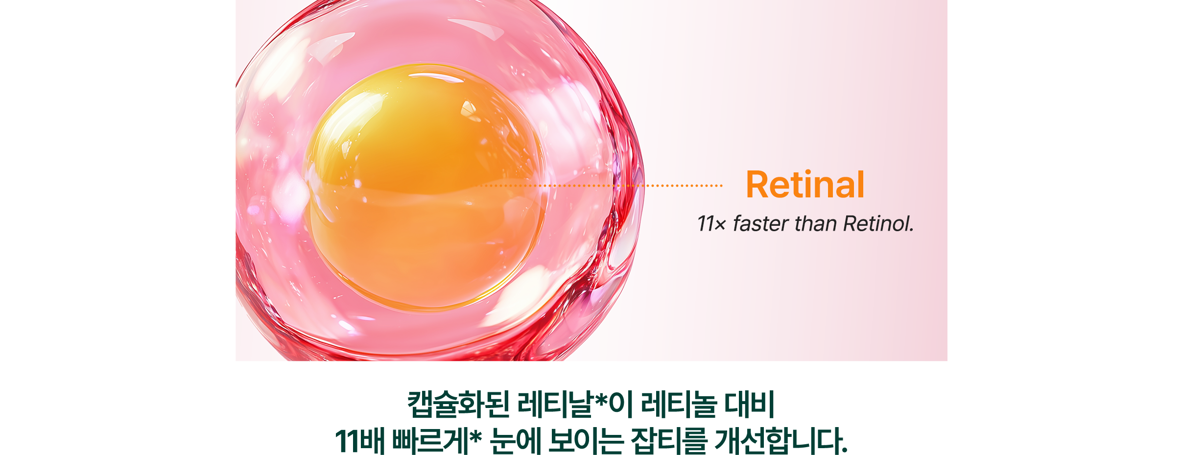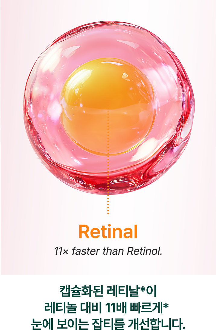 캡슐화된 레티날이 레티놀 대비 11배 빠르게 눈에 보이는 잡티를 개선합니다.